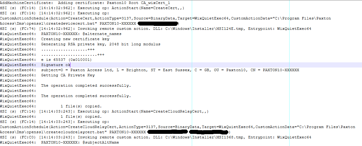 As part of an ongoing investigation into the Paxton10 access control system I took a look at how the Paxton10 server generated its TLS certificates and specifically at the root CA cert and the password for the private key. The issues uncovered had already been discovered on the Net2 system and written up by my friend Craig. Paxton10 seems to have inherited this issue including the same password. This writeup will focus on the process of extracting custom actions from a WiX installer as I found that interesting.